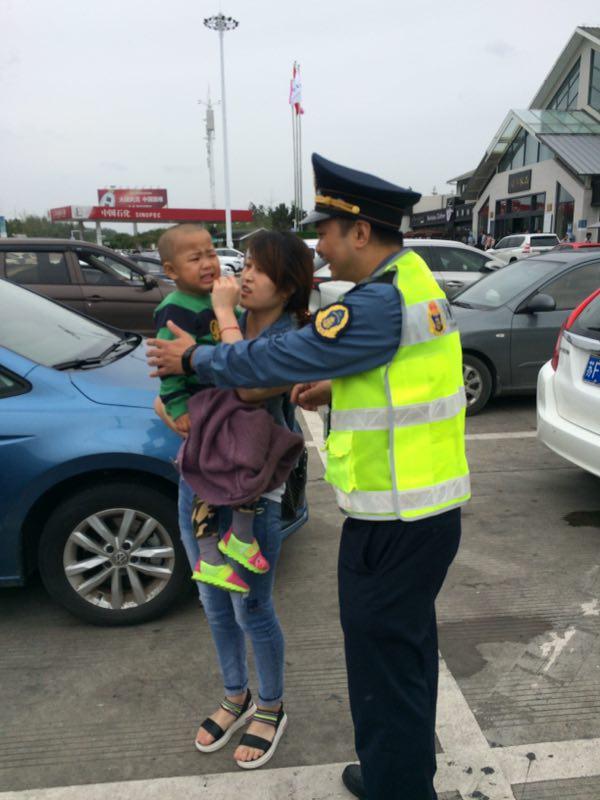 小朋友看衣服跟错了妈妈,服务区党员示范岗来帮忙