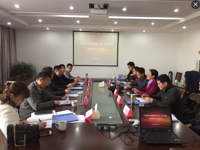 2017年3月17日,省厅质监局在扬州召开全省交通质监立法工作调研暨教学片审查会。姜竹生局长、汤渭清、丁志群副局长,厅法规处苏用副处长以及各相关科室负责人、扬州、泰州、镇江、淮安、连云港交通质监站主要负责人参加了会议。省厅质监局和法规处就江苏交通质监立法工作先期进行了沟通,并提出了有关建议方案,扬州交通质监站介绍了质监执法教学片的总体概况,并播放首部交通质监执法教学片供审,参会人员紧扣立法工作和教学片内容进行了详细交流和研讨。