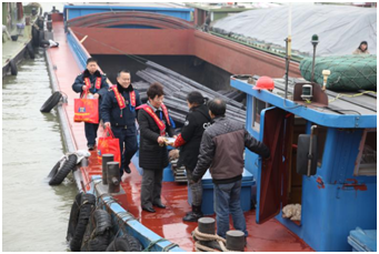3月8日,淮安船闸针对在运河跑运输女性船民,开展“关爱女性、从心出发”主题活动,组织工作人员来到待闸区,上船头、进船舱,走进女船民身边,向她们讲解日常健康常识,发放保健宣传材料、赠送健康折页和慰问品。(蒋超)