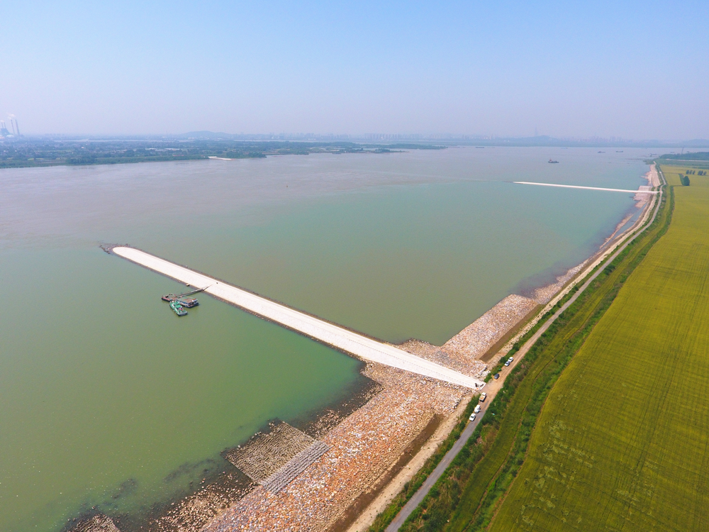 二期工程累计铺设护底软体排994万平方米,抛石797万立方米,安装大型混凝土预制构件635个,新建整治建筑物主堤6道(总长约20.4公里)、丁坝30座(总长约20.3公里)、护滩带23座(总长约4.7公里),加固护岸48.3公里,基建疏浚837万立方米,并配套建设导助航设施及其他相关设施。