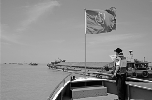 自5月20日以来,洪泽湖水位出现四连降,降幅达0.18米,截至5月24日上午,洪泽湖马浪岗水位12.36米,已低于正常通航水位0.14米。为确保水上运输安全,洪泽海事加强对湖区船舶的巡航管控,密切关注天气、水情变化,每日向船民发送通航信息。图为海事人员现场护航船舶通行。成立静 摄