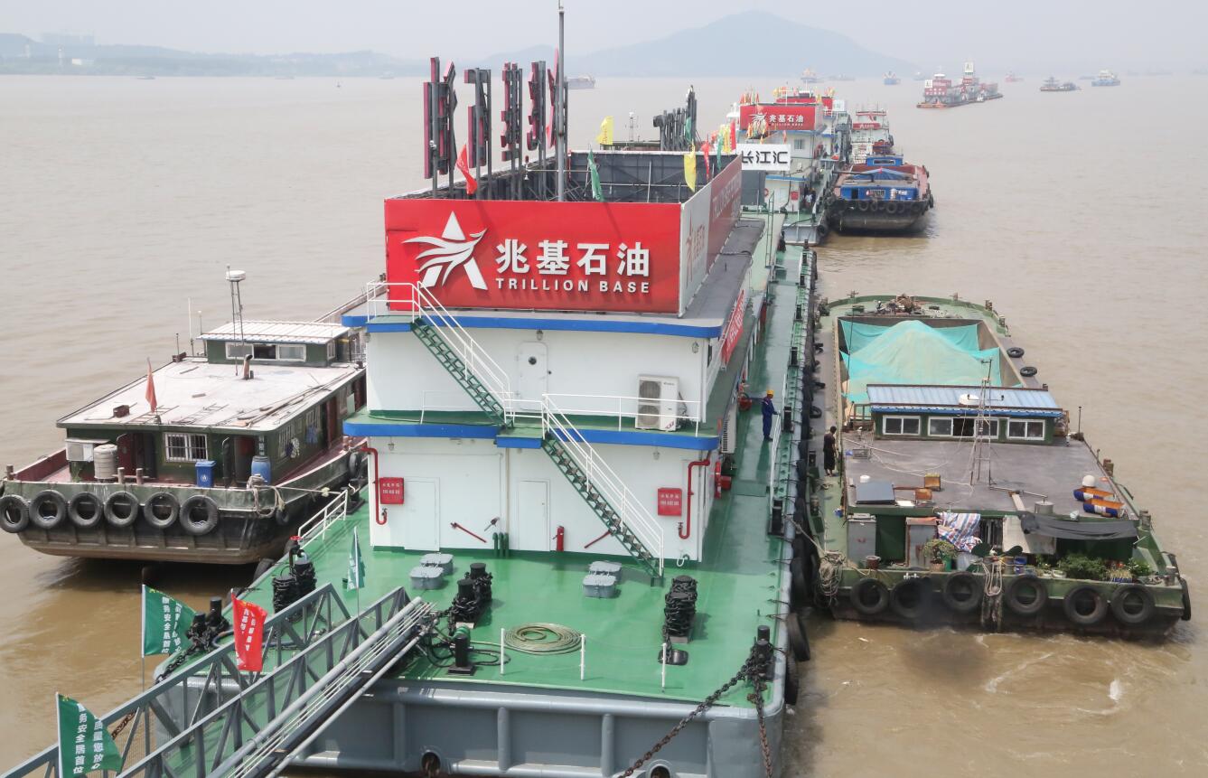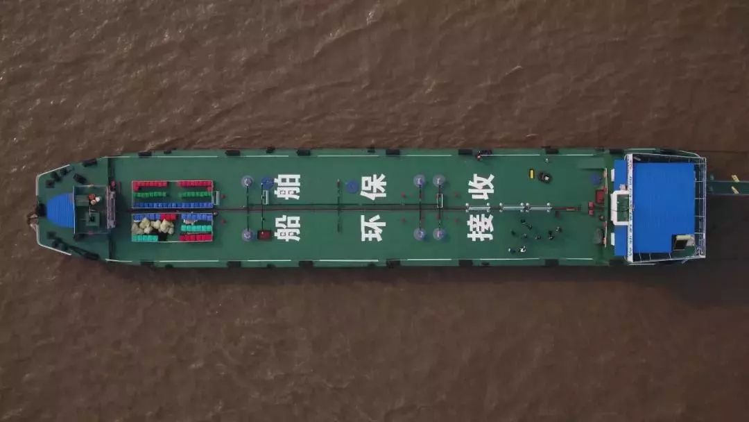 记者在现场看到,“长江汇”专门设立了75米长、13米宽的“油趸 1001”平台船用于环保接收,为过往航船提供油污水接收和免费的船舶垃圾接收、生活污水接收、厨余垃圾降解等4项水上环保处理服务。环保接收船共拥有8个接收仓,最多可一次性接收油污水800立方米、生活污水400立方米及船舶垃圾60立方米。垃圾通过有资质的垃圾收集船送上岸进行统一处理。“我们购置的厨余垃圾处理机,具备第一时间处理50公斤各类湿垃圾、变废为宝的能力。”“长江汇”环保总监王康明告诉记者。