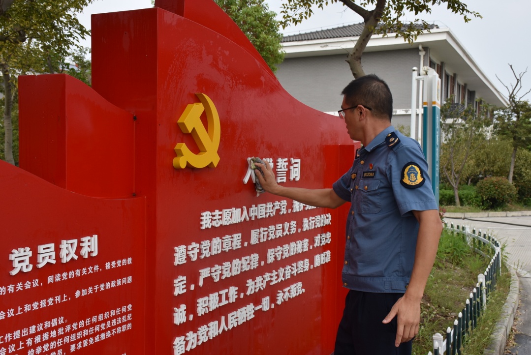 9月27日下午,宁杭支队第四大队支部组织全体党员,在大队驻地内开展以“红色阵地大扫除,干干净净迎国庆”为主题的党日活动,以崭新的容貌环境迎接新中国成立70周年。