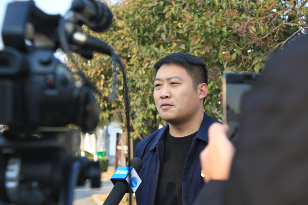 垫湖村党委书记周磊接受记者采访