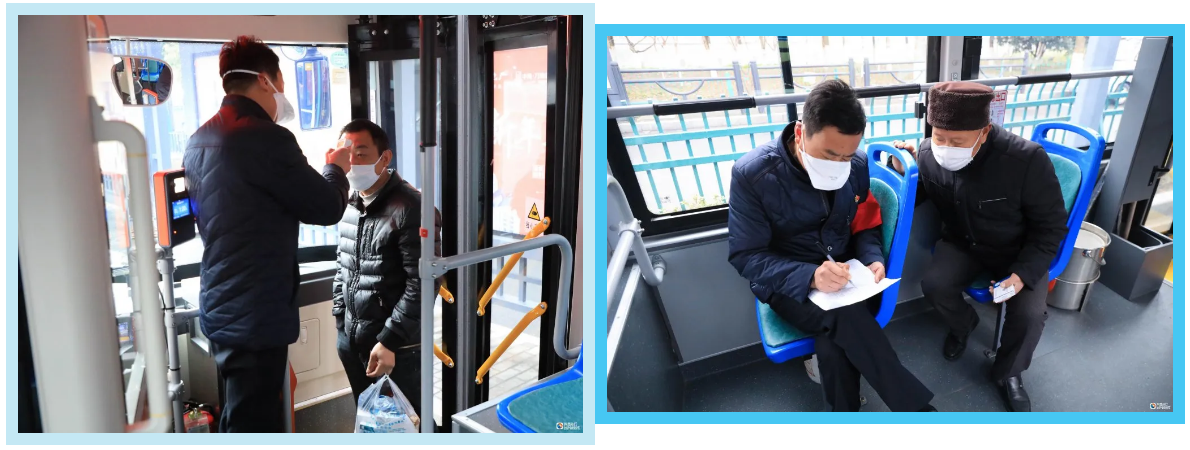 3月5日,盐城市航道管理处30名党员奋战在抗疫一线,随着全市运行的公交车做随车测温登记服务,争当新时代的“活雷锋”。