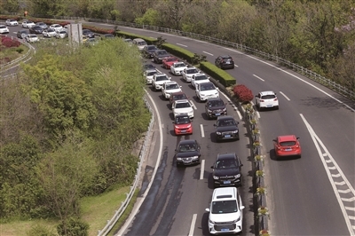 【新华日报】清明小长假最后一天南京中山门进城一侧车道车辆开始积压缓行