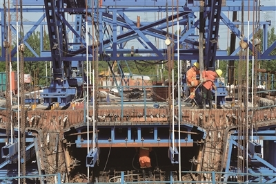 昨日,在中铁四局南京分公司承建的南沿江城际铁路跨长深高速特大桥施工现场,施工人员正在浇筑连续梁。 本报通讯员 杨储来 本报记者 万程鹏摄