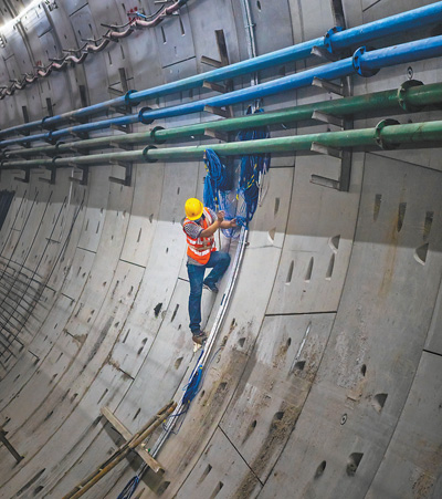 5月4日,在江苏南京长江五桥夹江隧道建设工地,青年工程技术人员正在紧张作业。眼下正是该项目施工的关键时刻,技术人员加班加点,力争按计划完成施工任务。 於朝勇摄(影像中国)