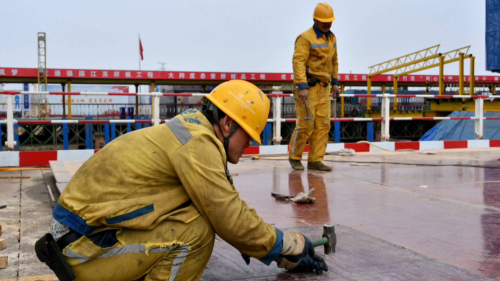 正月初三,常泰长江大桥的600多位建设者们经过短暂休整已全部归位,开始新的奋斗征程。在项目部南北工区,混凝土泵车循环往复,机械设备运转的轰鸣声,犹如“冲锋号”一般,吹响奋进的号角!