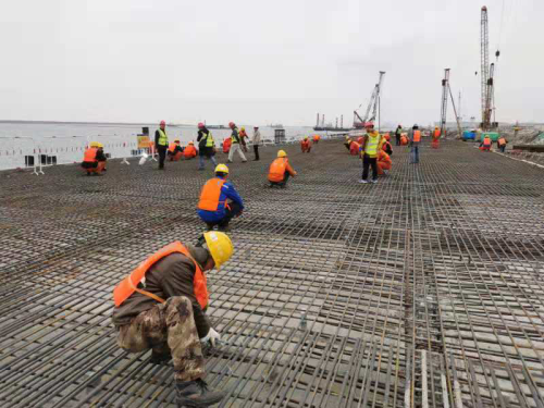 正月初四早上7点多,南通港吕四港区西港池8#-11#码头工程A标段及B标段现场呈现出一片繁忙的施工景象,200多名作业人员紧张地忙碌着,施工车辆来回穿梭,投入到码头前平台的混凝土浇筑、打桩等施工当中,保证年底开港目标的实现。