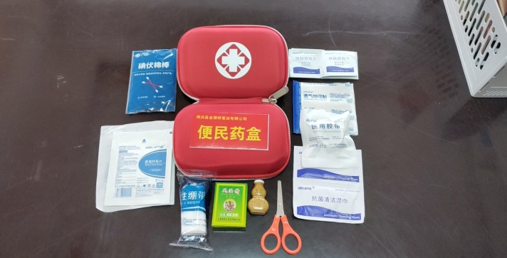 便民药盒里有速效救心丸、藿香正气水、风油精、碘伏棉棒、医用胶带、弹性纱布、酒精、消毒片、抗菌清洁湿巾、医用纱布、创可贴等应急救援物品。乘客在乘坐公交车时,一旦发生突发状况,可以得到及时的简单救治。