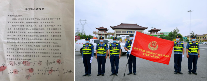 宿迁市公路事业发展中心工会主席刘光辉,一位59岁的老党员,今年12月份即将退休,带头第一个报名参加了党员突击队。市交通运输综合执法支队道路执法一大队10名退役老兵主动向组织递交请战书,成立了退伍军人服务队,奔赴抗疫一线,落实对来宿返宿的车辆和人员查验“一码一卡”、核酸检测结果,宣传防疫政策等措施,做到不漏一车、不漏一人,以最严密的措施做好防疫工作,牢牢守住“外防输入”关口。市运输服务中心转业军人谢雪峰是一名有着28年党龄的老党员,第一时间要求到疫情防控压力最大的宁宿徐高速公路收费站值班,在向党组织提交疫情防控请战书中写道“我将以军人攻山头、守阵地般的决心和意志,牢牢守住城市‘大门’”。