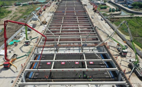 6月8日,位于无锡的国内在建最长干线公路湖底隧道——竺山湖隧道首块底板浇筑开始,标志着该隧道主体结构施工正式拉开帷幕。