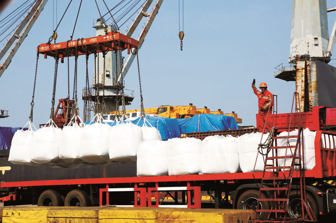 2月28日,连云港港东方公司码头装卸货物一派繁忙景象。今年以来,连云港港不断优化口岸营商环境,压缩货物通关流程,落地铁路“快速通关”“抵港直装”“船边直取”等模式,货物到港实现24小时装卸作业,做到快装快卸,全力冲刺首季开门红。王 春 摄