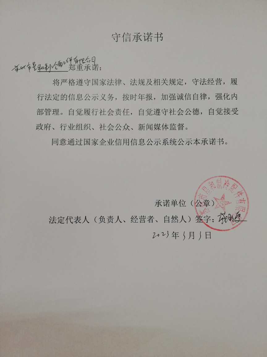 苏州市相城区交通运输局公示守信承诺书(苏州市星和制冷配件有限公司)