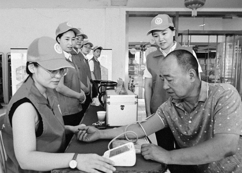 “陈传香见义勇为志愿服务队”在新桥服务区为司乘测量血压。