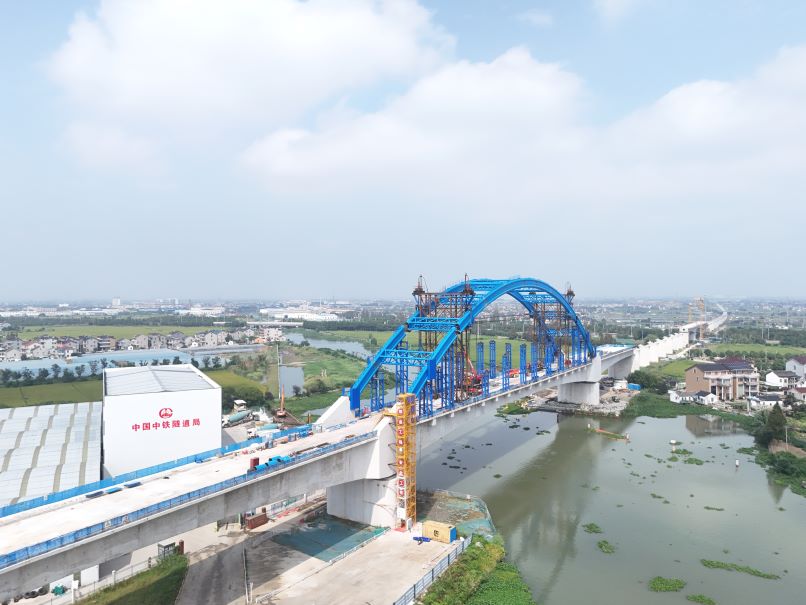 11月23日,通苏嘉甬高铁苏南特大桥跨白蚬江连续梁拱组合桥主跨顺利合龙,打通了14公里的重要架桥机通道,为有序推进苏南特大桥建设奠定了坚实基础。