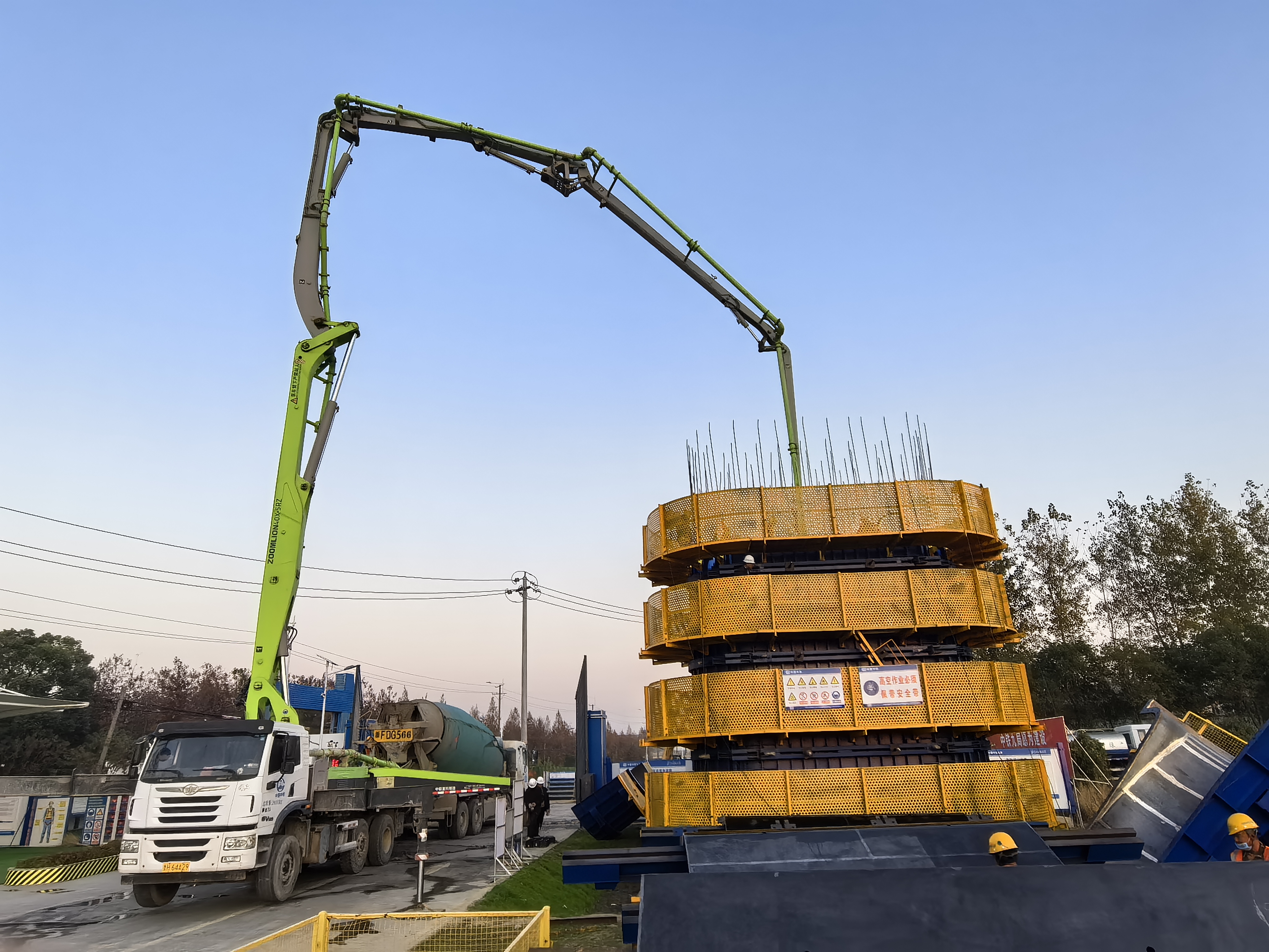 盐泰锡常宜铁路武进特大桥位于常州市武进区、无锡市惠山区境内,全长9593.28米,共有钻孔桩2010根、管桩418根、墩身285座、连续梁7联。本次施工的214号墩总高15.5米,其中墩身高度14.5米、支墩高度1米,本次首次浇筑高度为7.5米,浇筑混凝土方量114.75立方米。
