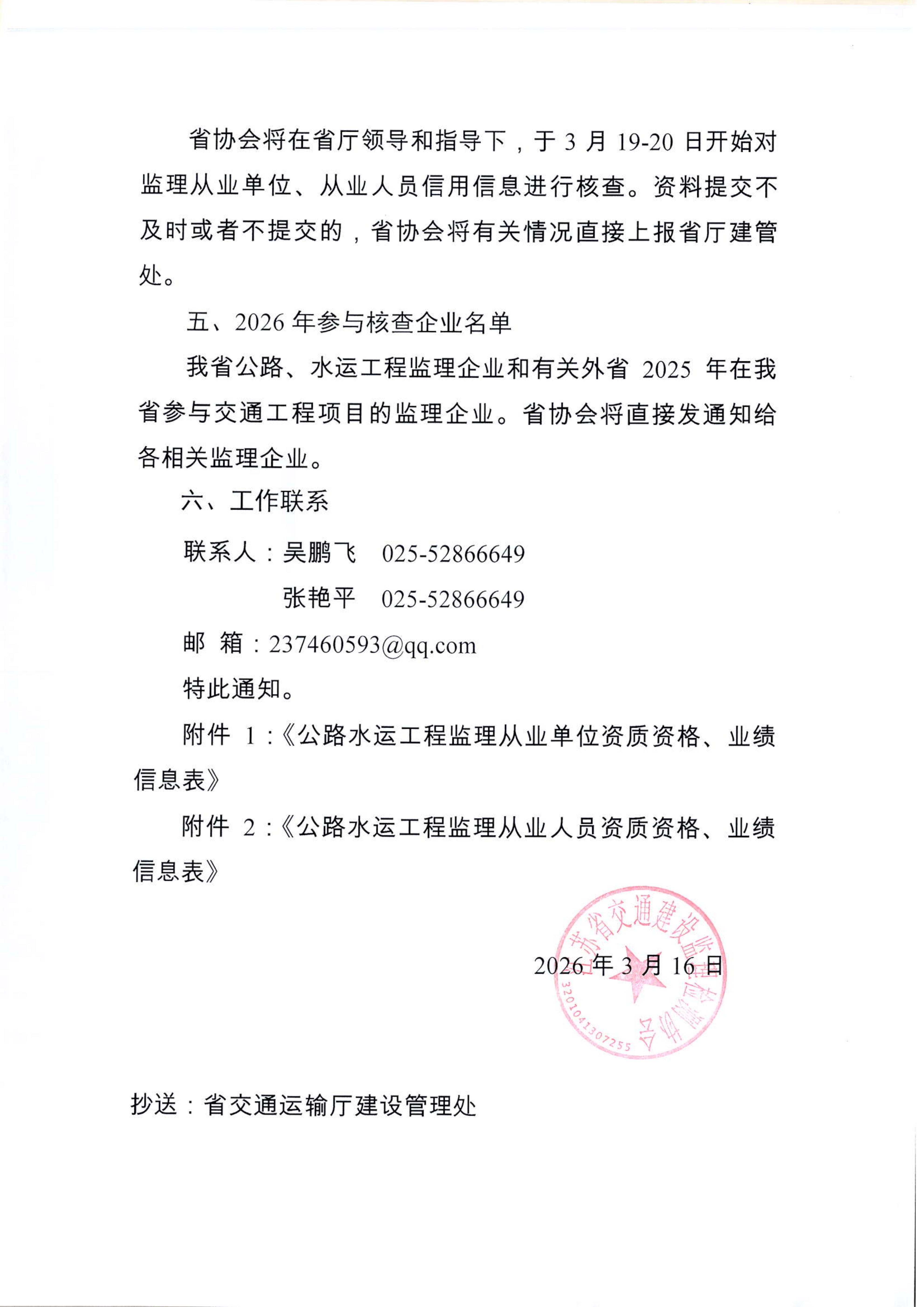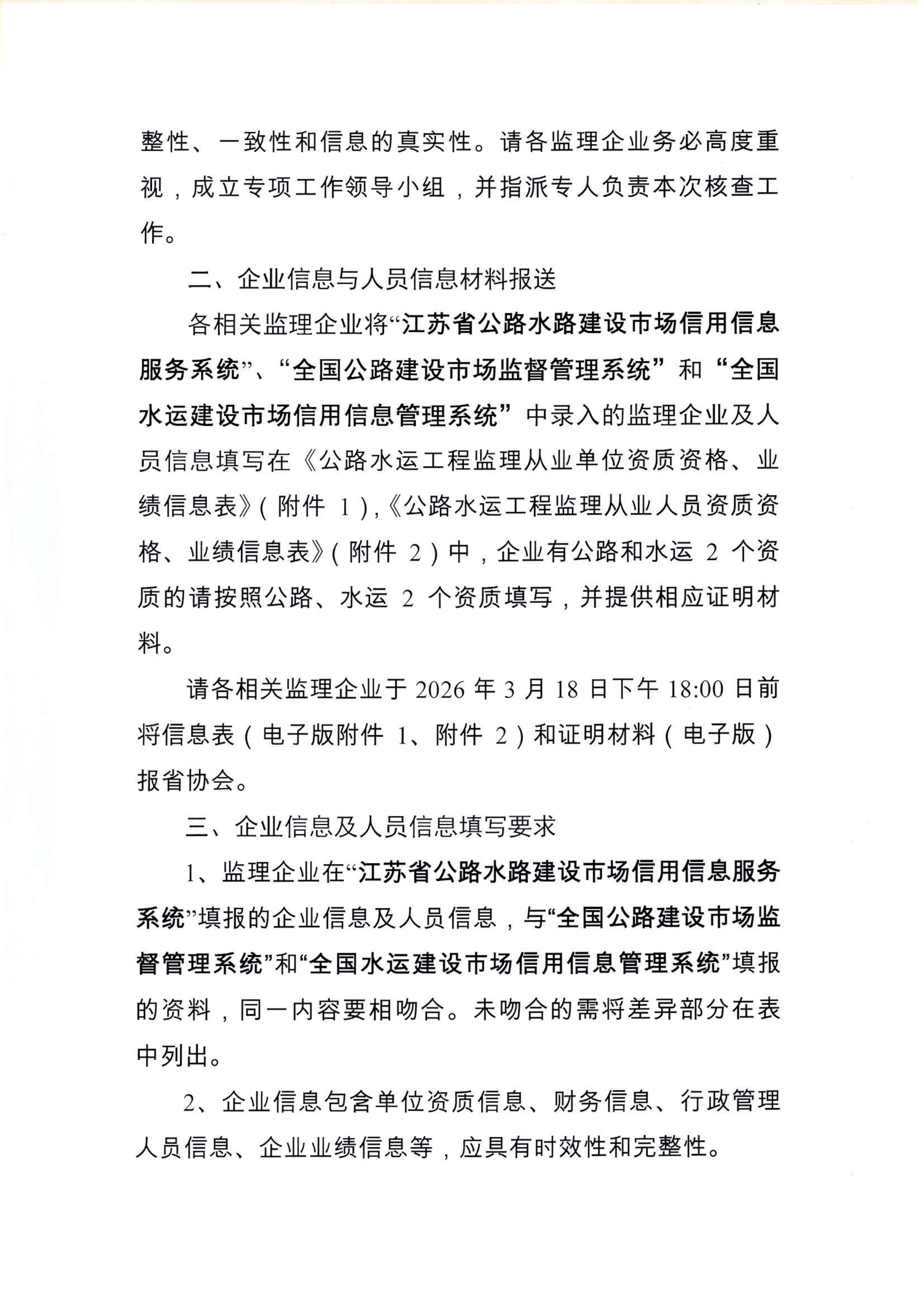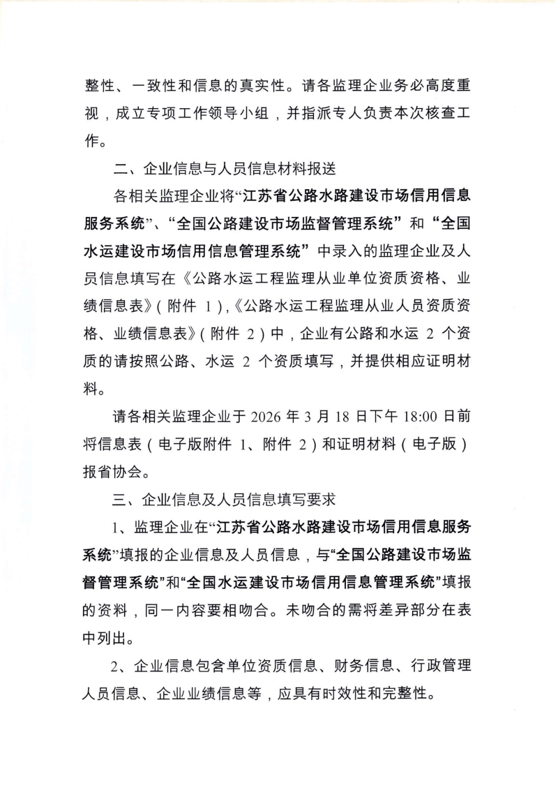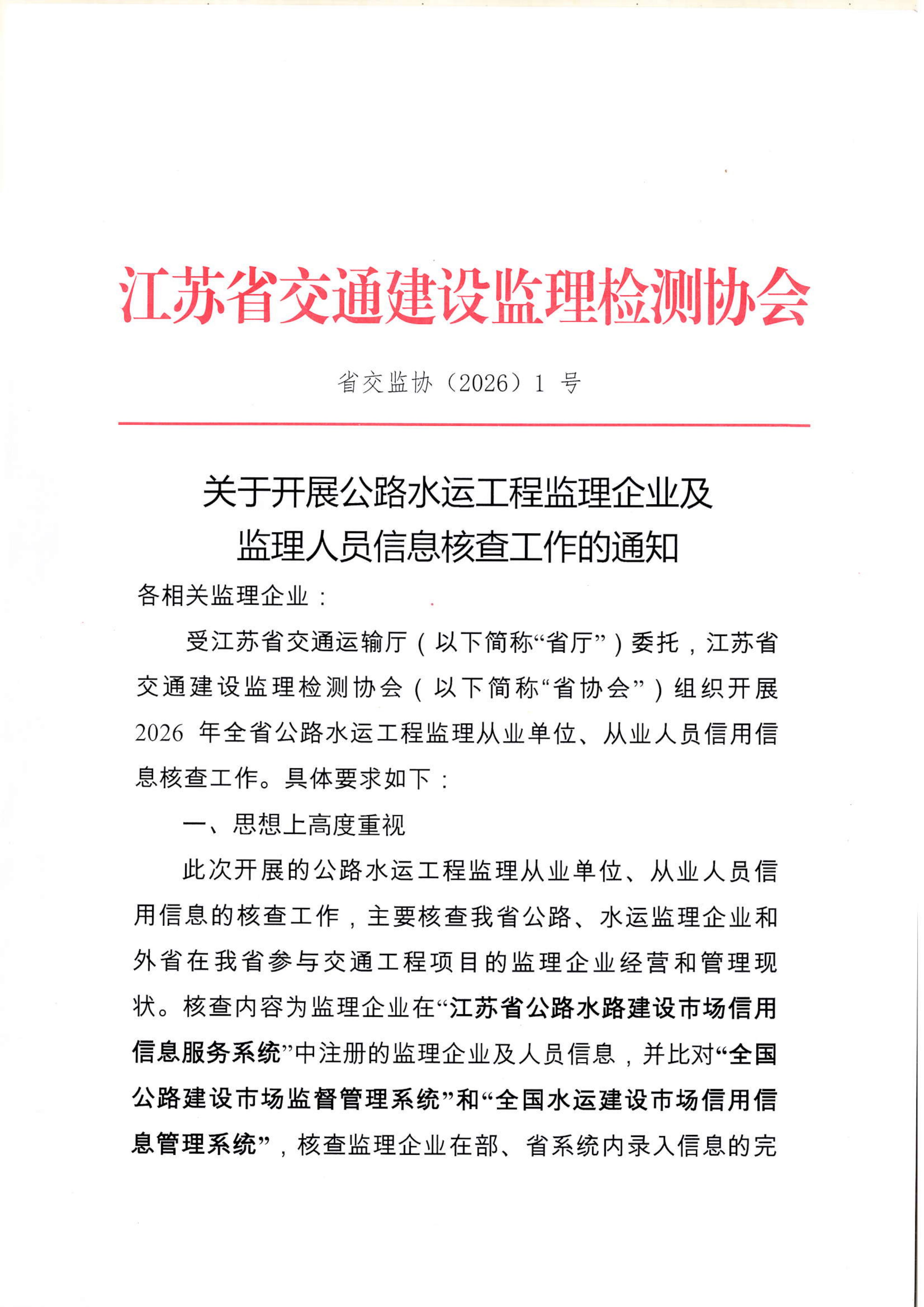 关于开展公路水运工程监理企业及监理人员信息核查工作的通知