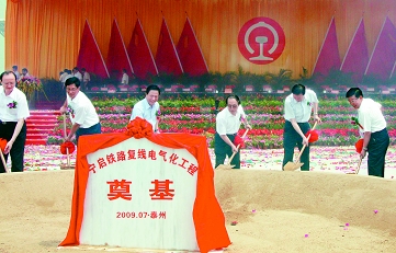 7月14日,宁启铁路复线电气化工程建设动员大会在泰州举行。江苏省委书记梁保华出席大会并宣布工程开工。铁道部部长刘志军,江苏省委副书记、省长罗志军在开工仪式上讲话。