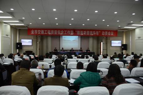 3月27日上午,淮安市交通运输局召开全市交通工程质量安全工作暨“路面质量提升年”动员会议。市交通运输局徐效文局长、张义贵副局长、夏文坚副局长、纪委王建华书记、徐成东副局长出席会议,会议由张义贵副局长主持。全体与会人员集中观看了市交通质监站制作的工程质量分析短片后,市交通运输局夏文坚副局长作交通工程质量安全工作报告,全面总结回顾2014年交通工程质量安全主要做法和取得的成效、存在的问题,部署2015年度全市交通工程质量安全工作:一是深入开展“路面质量提升年”活动。二是扎实开展“平安工地”建设活动。三是强化参建单位责任意识,规范质量安全管理行为。四是加强合同履约考核管理。五是开展专项整治,加大行政处罚力度。徐成东副局长宣读了2014年度交通建设工程质量工作情况通报。