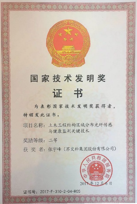 日前,国家科学技术奖励大会在北京举行,271个项目和9名科技专家获2017年度国家科学技术奖。苏交科集团检测研究院结构监测中心主任张宇峰参与完成的“土木工程结构区域分布光纤传感与健康监测关键技术”项目荣获国家技术发明二等奖。此项奖励实现了苏交科集团在国家技术发明奖领域的突破。