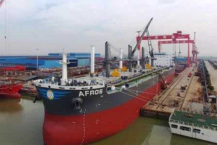 1月18日,位于如皋港区的江苏海通海洋工程装备有限公司码头,一艘64000吨的散货船正式命名交付。