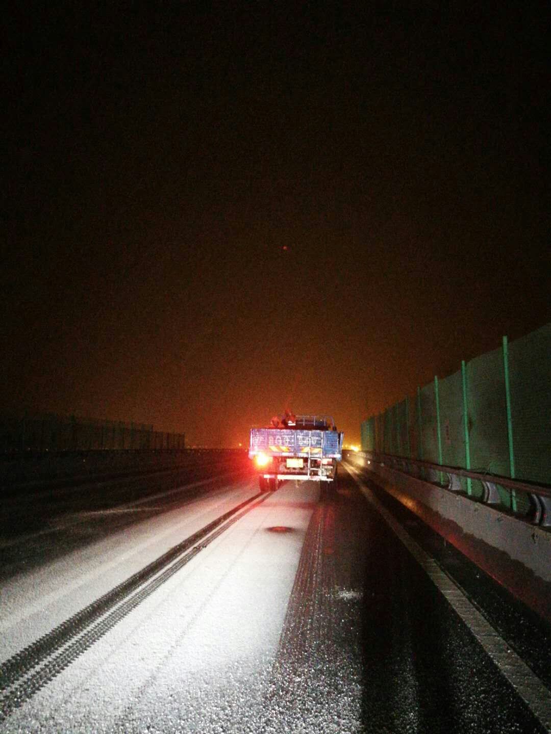 同时,路网中心密切关注天气情况,根据监控画面和巡查人员的报告,结合雪情,已通过短信、微信等方式发布路况信息,并及时调度养护人员到桥梁、重点路段进行除雪。(徐州路网)