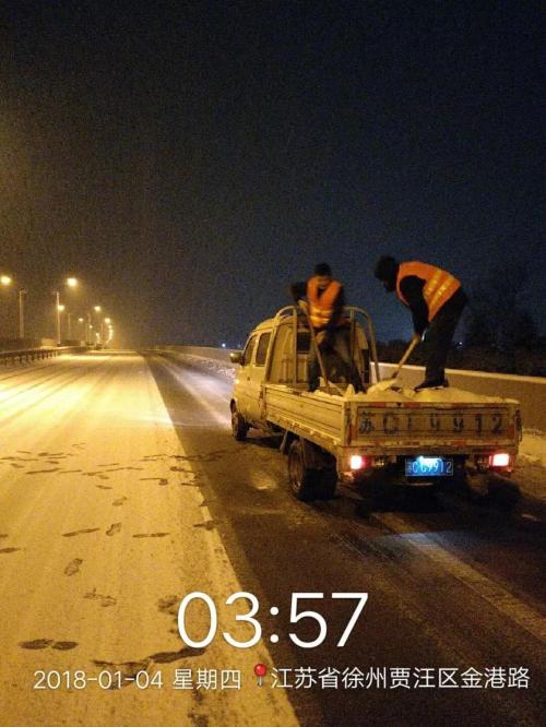 降雪以来,徐州公路部门连夜组织应急除雪人员926人,出动融雪剂撒布车、铲车(除雪扳)等养护机械设备450余台套,抛洒防滑料1200余吨,保障了桥梁、急弯陡坡等重点路段安全畅通。
