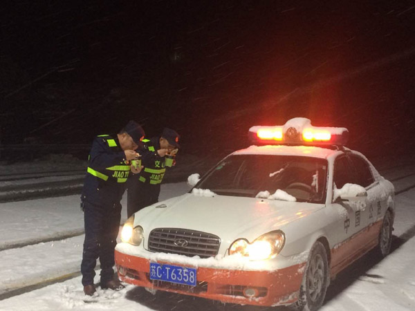“听说下雪天,巡查和方便面更配哦。”开了句玩笑,徐州邳州公路管理站巡查员李年猛、宋蔚蔚捧起了手中的泡面,此刻正值1月4日晚9点,他们已经在路上巡逻了近10个小时。短暂的补充热量后,巡查车继续向前开去,橙色的车灯,照亮的是无数人的平安路。
