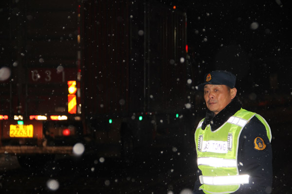 “在车上才踏实,怕回办公室呆着,路上有情况了不能第一时间赶过去,这大雪天气一分一秒都不能耽误!”江都公路站路网安全股负责人耿涛两天来在辖区146公里的干线公路重点路段,17座大中桥梁来回巡查了3次,每到一处,都要在雪地里仔细地查看路面是否结冰。大雪纷飞的深夜,那一抹藏青色的身后留下的是一深一浅的脚印。即使36个小时不合眼,疲惫不堪的他也只肯靠在车椅上短暂地休息一下。