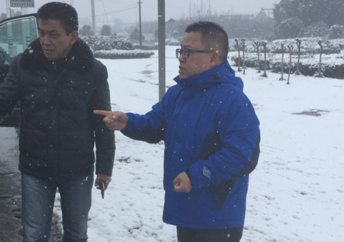 “多动动、多跑跑、干干活,反而觉得感冒没那么严重了。” 南通公路处副处长何启军(下图右一)带病坚持在一线督查指导。