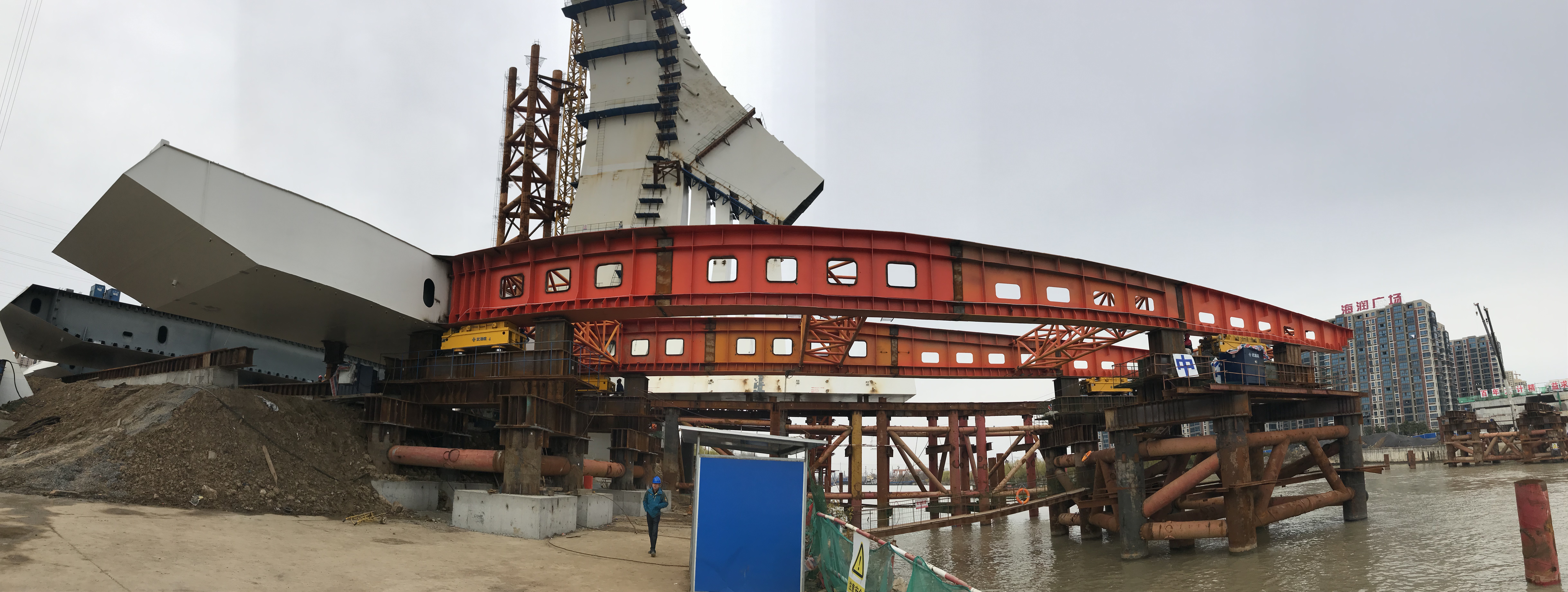 京杭运河淮海路大桥首节钢箱梁顺利顶推完成