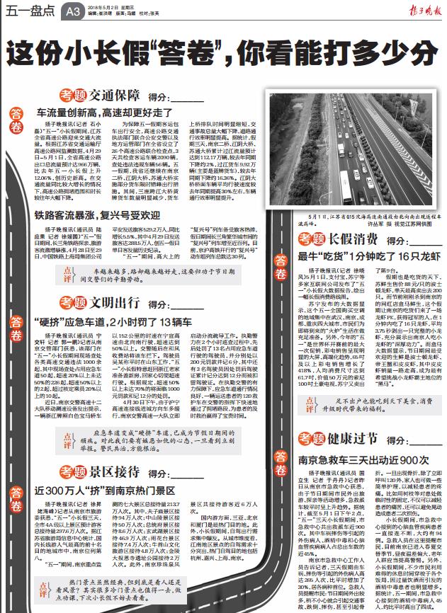 【扬子晚报】这份小长假“答卷”,你看能打多少分