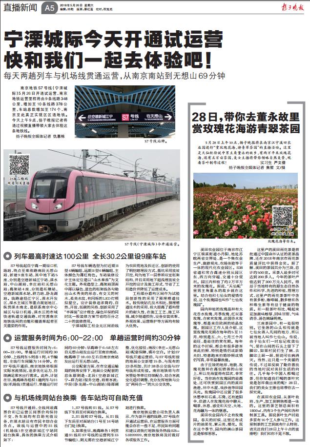 【扬子晚报】宁溧城际今天开通试运营 快和我们一起去体验吧!