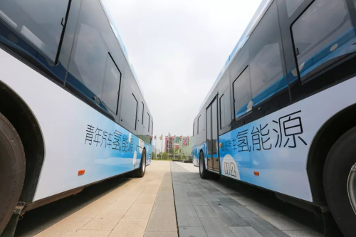 氢燃料电池大巴呈流线型,电池藏在车顶尾部,一次加满13公斤氢气,可行驶400公里。基本没噪音,宽敞,空间大,减震效果比锂电池的公交车要好,更主要是实现了零排放。(通交)