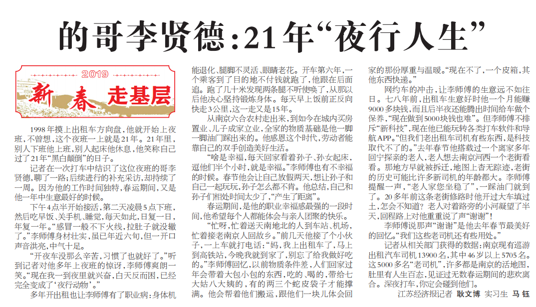 【江苏经济报】的哥李贤德:21年“夜行人生”