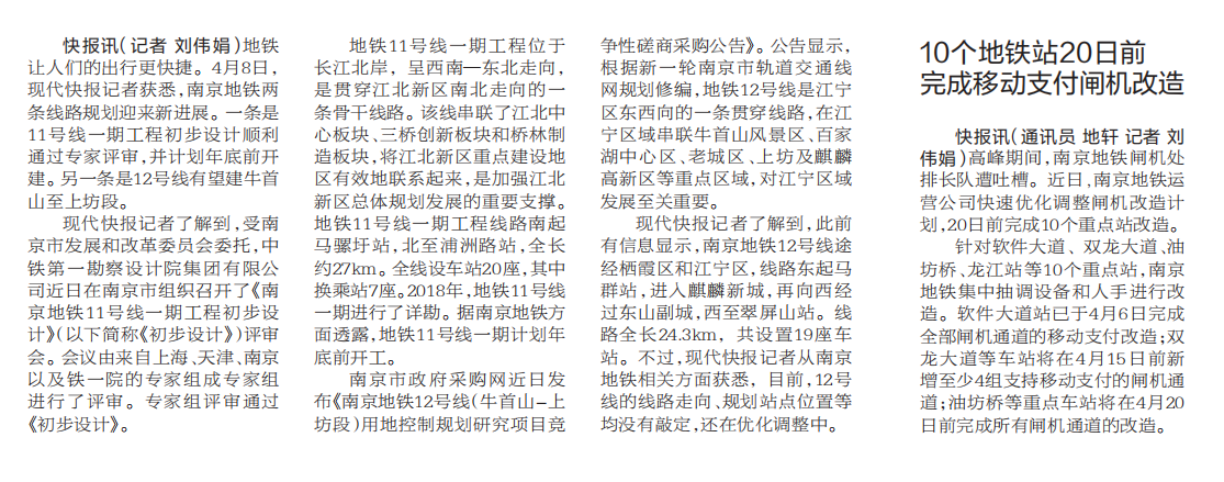 【现代快报】11号线年底前开建,12号线贯穿江宁