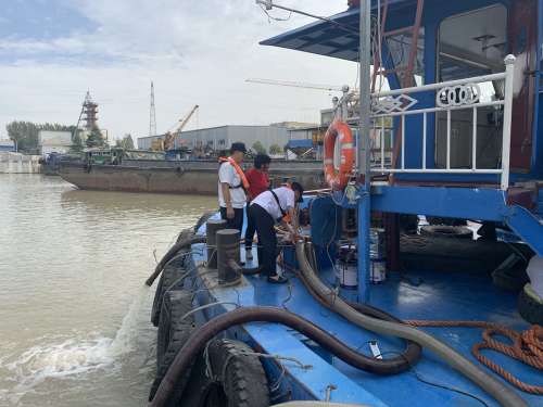 接到求助电话后,淮安交通综合执法支队紧急出动执法人员5人、海巡艇1艘、海巡车1辆,同时调集拖船和驳载船各2艘紧急抢险,历时约13小时30分,于23时许完成救助,帮船舶消除了险情。(淮交)