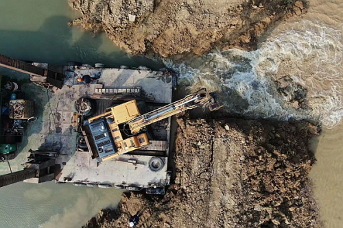 作为苏锡常南部高速公路的关键控制性工程,全长10.79公里的太湖隧道建设备受各界关注。隧道采用堰筑法从岸边向湖中逐段分仓推进,在钢板桩插打及抽水、土方开挖、隧道主体施工完成后,进行回土、回水作业。本次回水作业面积43.4万平方米,回水量约90万立方米,回水时长约48小时,回水后新增1.5公里的隧道“潜入”湖底,还碧水于太湖,为隧道正式通车打下坚实基础。