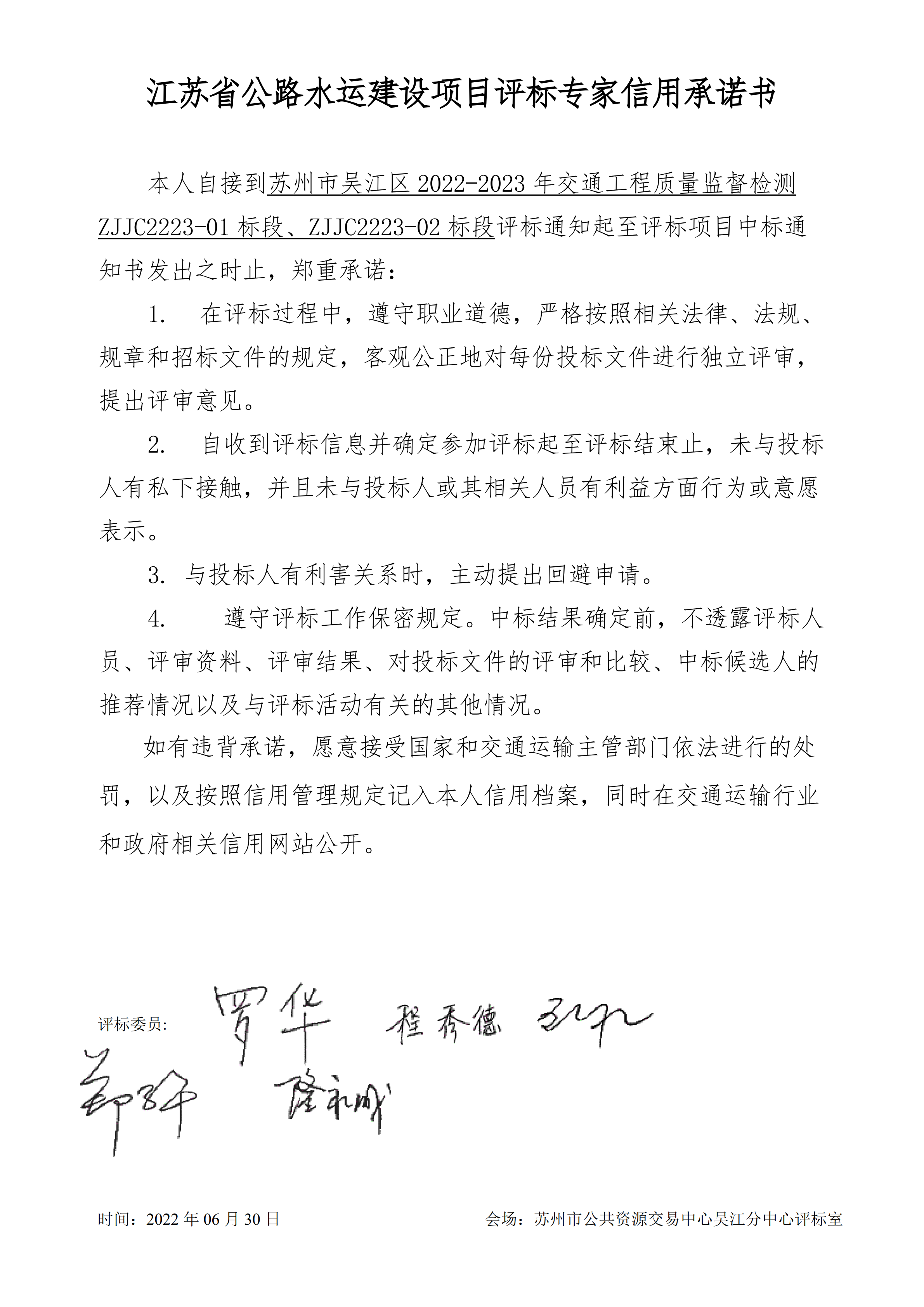 苏州吴江区交通运输局公示江苏省公路水运建设项目投评标专家信用承诺书