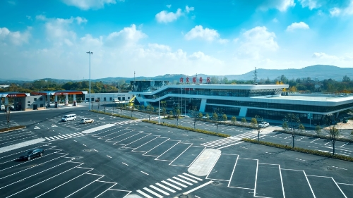 着力以绿色施工打造“绿色工程”。强化精细化管理,全线便道均采用混凝土硬化,料仓实行全封闭管理,拌和站污水经三级沉淀处理后用于现场洒水降尘,通过视频监控系统(拌和场、道口)、扬尘监控和自动喷淋降尘联动系统等实时管控和处置,有效落实“零扬尘”;大力推行无人机在施工中的应用,对现场扬尘、施工动态、安全设施设置等情况进行动态管理,提高管理效率。