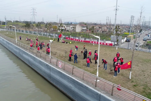 3月10日,省交通运输厅港航事业发展中心党委“强红色党建 筑绿色港航——义务植树暨主题党日活动”在秦淮河航道整治工程绿化施工现场和爱国主义教育基地“红色李巷”举行。