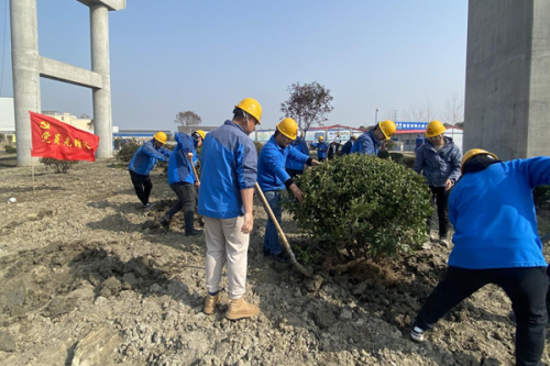 3月11日上午,宿迁市铁路事业发展中心第二党支部联合洋河大道功能型党支部开展“‘植’下学雷锋精神根基,‘树’立为人民服务品格”主题党日活动,到洋河大道一标段绿化带现场开展“植树竞赛”。植树过程中,三五人为一组分工合作、互相配合,有的挥锹铲土、有的扶树填土,每个人都忙得不亦乐乎。新栽种的绿化苗木为工地增添了一片新绿,构成了一道靓丽风景线。