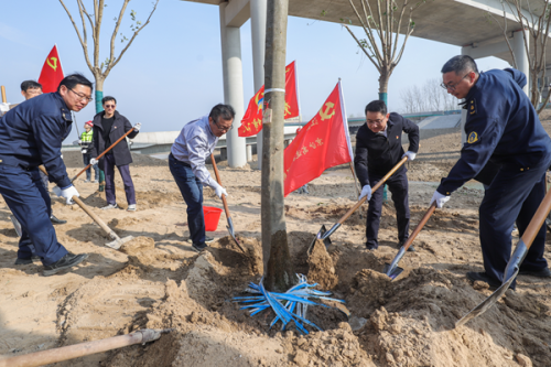 3月10日上午,京沪高速公路沂淮淮江段扩建工程一路多方联合开展“同心同力为京沪增绿,党建共建为京沪添彩”植树活动暨王兴枢纽绿化工程启动仪式。