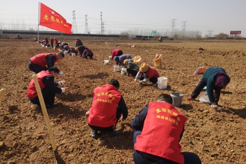 此次植苗行动是“高速雷锋车”从路内服务向路外服务的延伸。 此前,“高速雷锋车”工作人员得知高速公路沿线张楼村在开展杨柳育苗农业扶贫项目。第二大队立即联系街道,与社区工作者一起,穿上红马甲,来到邳州市经济开发区的苗圃园地开展爱心植树行动。“一指深,三指宽。”经过简单的培训之后,志愿者抓起大把树苗,弯下腰、蹲下腿,沿着样线一棵棵把树苗插进土里。