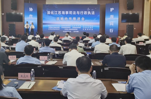 今年7月11日是我国第18个航海日。当天,省交通运输厅和南京海事法院等11家单位共同举办了“协作共治护海同行”深化江苏海事司法与行政执法战略协作推进会。省委常委、省委政法委书记邓修民,省法院党组书记、院长夏道虎,省自然资源厅党组书记孔海燕,江苏海事局党组书记、局长朱汝明,公安部长江航运公安局党委书记、局长朱俊,江苏出入境边防检查总站党委书记、政治委员冯兰昌,南京海事法院党组书记、院长花玉军,省交通运输厅党组成员何平等出席会议。
