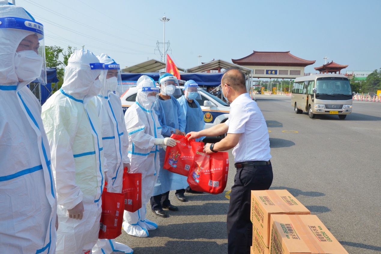 在宿迁主线收费站查验点和市交通运输综合行政执法支队驻高铁站执勤点,刘飞在与工作人员交谈中,详细了解了人员配备、后勤保障、值班值守等情况,为他们送去慰问品,并对他们的辛勤付出表示感谢。刘飞叮嘱他们要做好长期战斗的准备,继续发扬不怕苦的精神,把各项疫情防控要求落实到位,同时也要注意做好自身防护,确保安全。