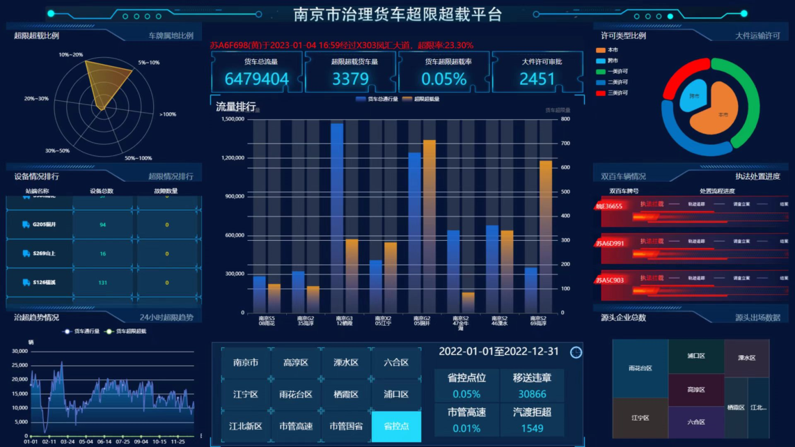 在该治理模式中,南京市交通运输局突出优化“信用+科技”治超新手段,充分运用北斗技术、云计算和大数据监管等科技助力诚信运输市场建设。一方面,依托“综合执法”APP,利用大数据筛查,梳理汇总车辆的运行频次、位置定位和运行轨迹,让超限超载车辆无处遁形;另一方面,依托不停车动态称重检测系统,利用电子眼取证和动态称重,实时预警超限超载车辆,直击当事人恶意闯卡、现场取证困难等传统执法的难点、痛点,为后续非现场精准执法夯实基础。