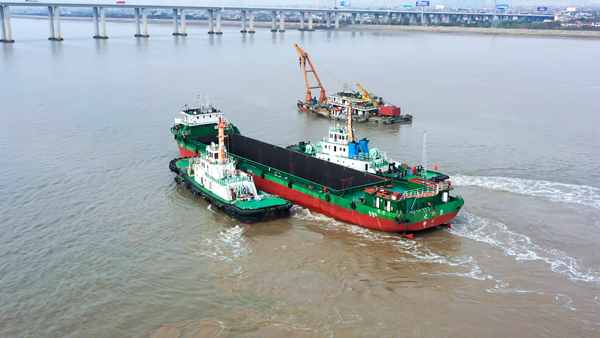 “我是崇明海事局指挥中心,请你船采取措施控制船位,防止碰撞崇启大桥。我们马上协调应急力量前往救助!”涉水部门接报后,海事、航道快速响应,巡航执法船、打捞船、检测船同步出动,设置桥区管控区域、组织货物打捞、开展水体检测。